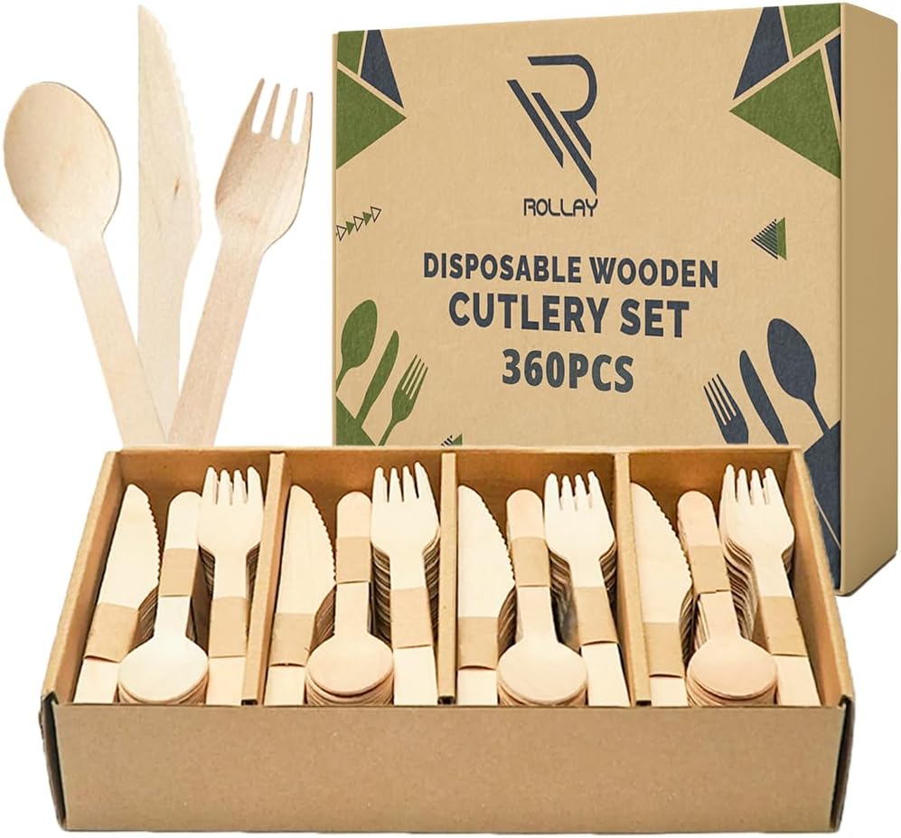 Rollay 360 PCS Disposable Wooden Cutlery Set