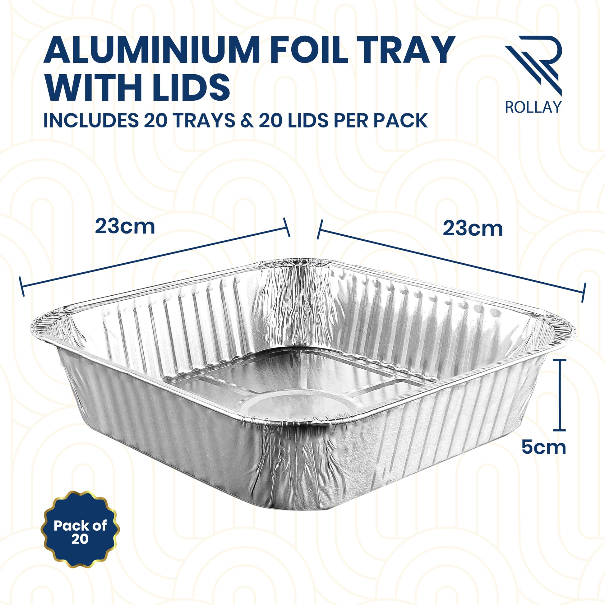 Rollay 20-Pack Aluminium Foil Trays with Paper Lids, 9x9 Inch Foil Food Containers with Lids